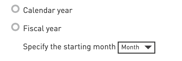 Participants must specify the starting month of their fiscal year. If participants select fiscal year, starting months between February and June must correspond to calendar years 2025/2026.