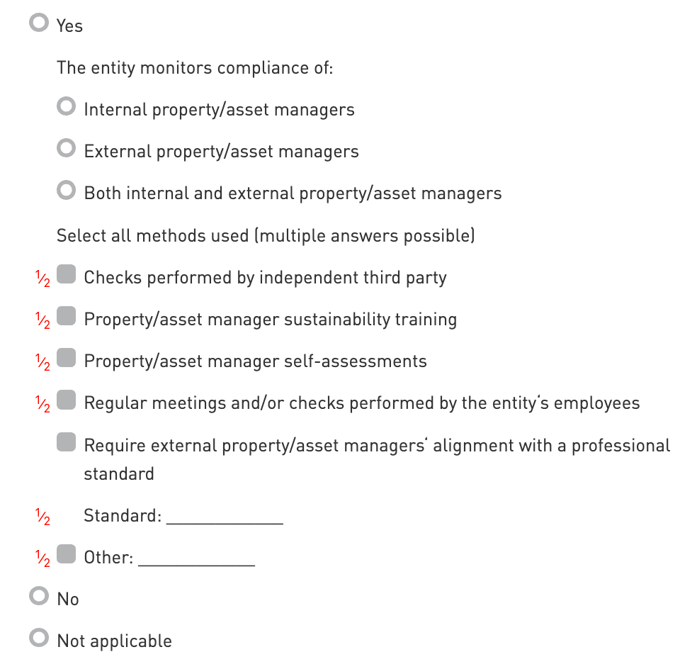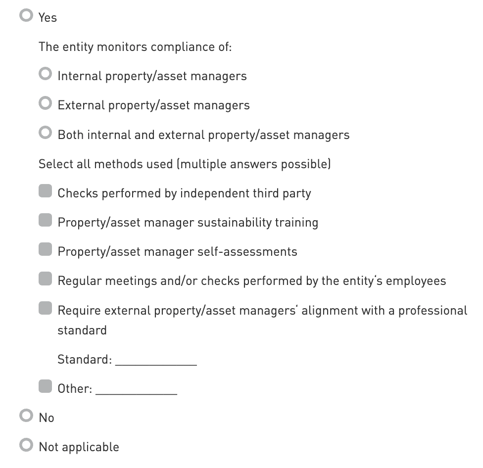 Does the entity monitor property/asset managers’ compliance with the sustainability-specific requirements in place for this entity?