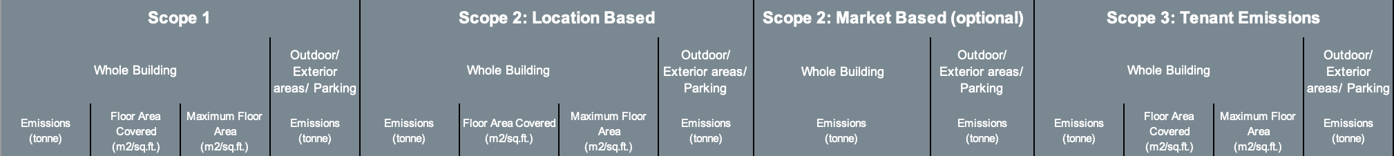 Scope 3 emissions are those associated with tenant areas, unless they are already reported as Scope 1 or Scope 2 emissions (if they cannot be disassociated from emissions from other areas). Scope 3 emissions do not include emissions generated through the entity’s operations or by its employees, transmission losses, or upstream supply chain emissions.