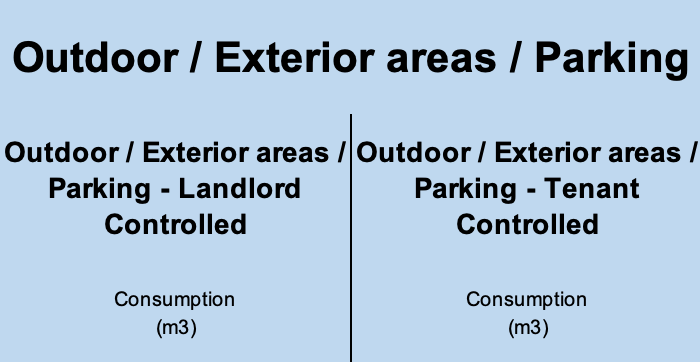 Otherwise, the water consumption from outdoor/exterior areas/parking can be included in Base Building or Whole Building. Example: