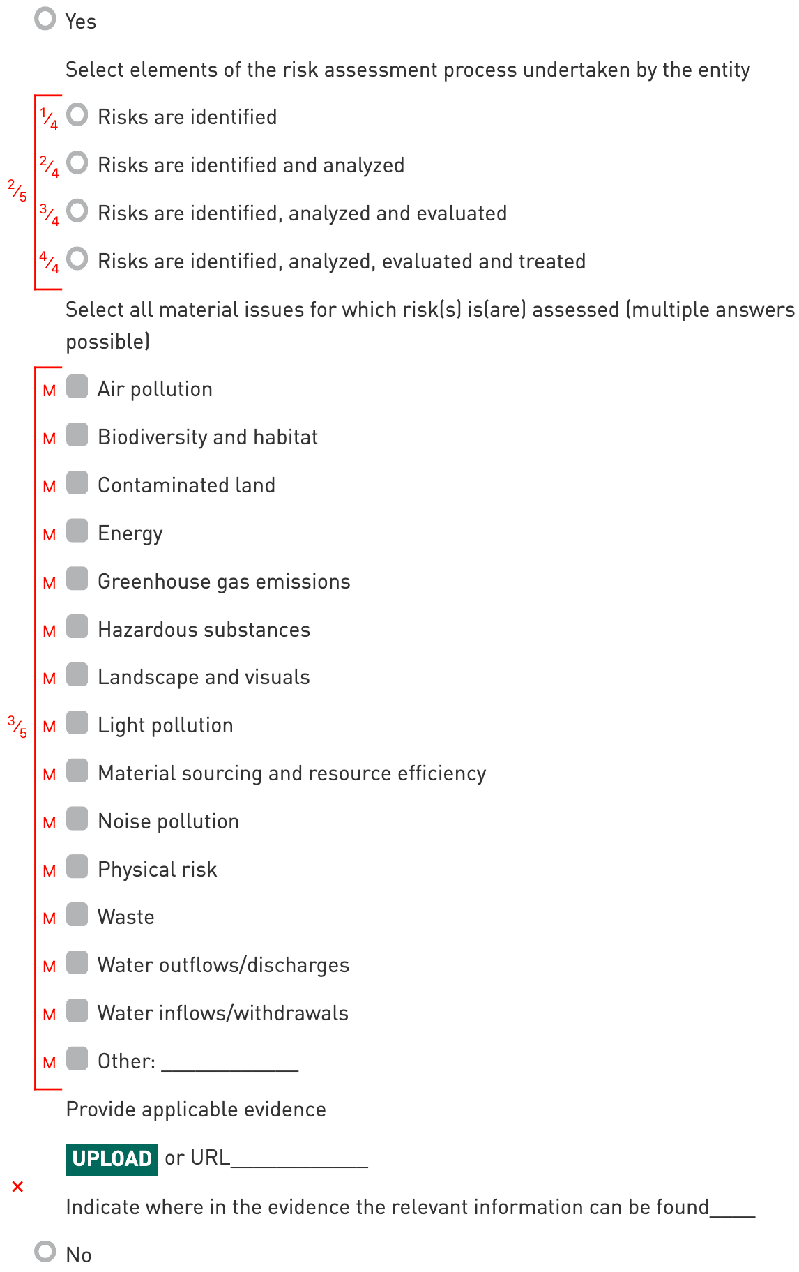 Evidence does not necessarily need to be provided in full. Rather, the evidence needs to be sufficient to verify the existence of the selected risk assessment elements for each issue.