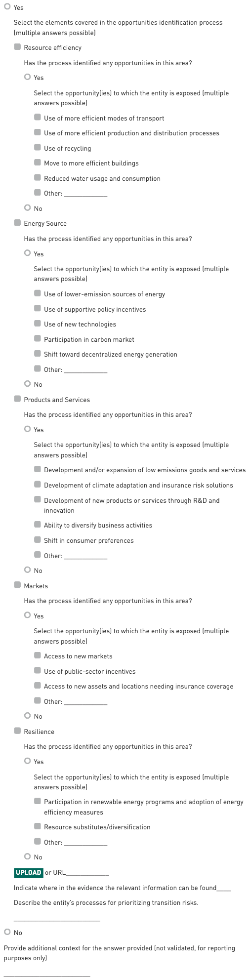 The intent of this indicator is to assess whether and how the entity uses a systematic approach for identifying climate-related opportunities that could have a material financial impact on the entity.