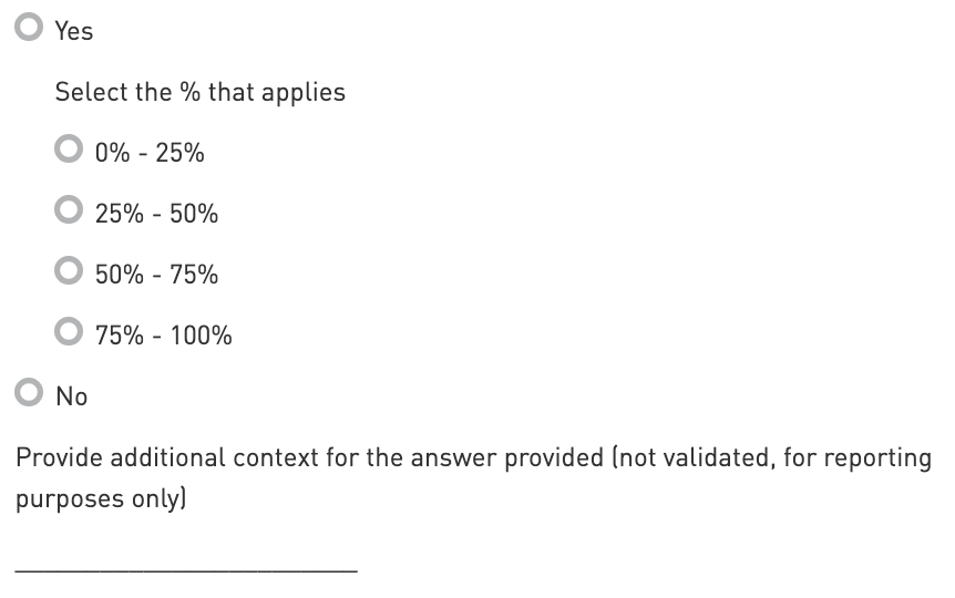 Select Yes or No: If selecting ‘Yes’, select applicable sub-options.