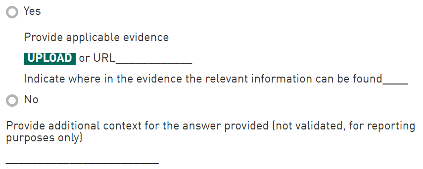 Supporting evidence is mandatory but for reporting purposes only.