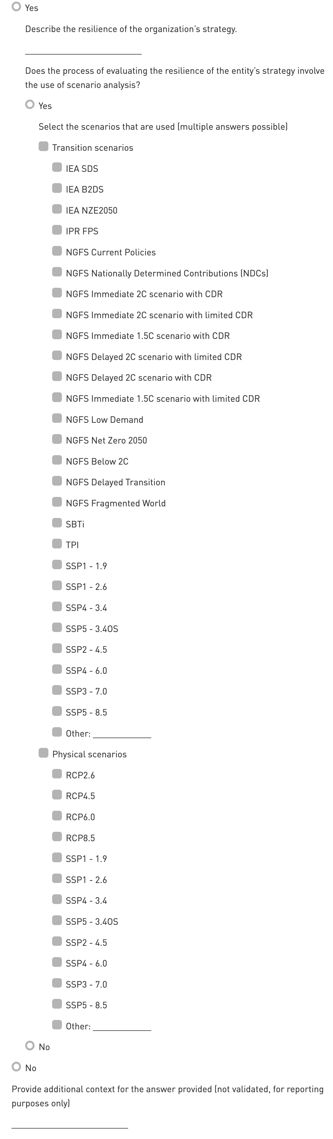 Note: The NGFS scenarios included as options in the 2026 GRESB Assessment refer to the 2024 version. Please report any 2025 NGFS scenarios under ‘Other’.