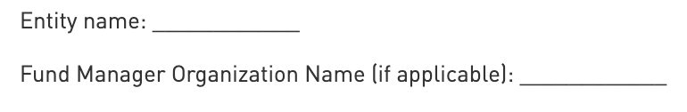 Fund or company name of the investable entity for which the Assessment is submitted. In the case of listed companies, the entity name is the legal name of the organization, also used for identification on international stock exchanges. In the case of non-listed entities, the entity name identifies the investable portfolio for which the Assessment is submitted.