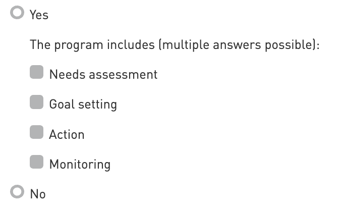 Select yes or no. If yes, select all applicable sub-options.