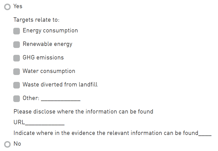 The answer options are validated by using the hyperlink(s) collected by GRESB or provided by the constituent. Points are contingent upon the validity of the disclosure.