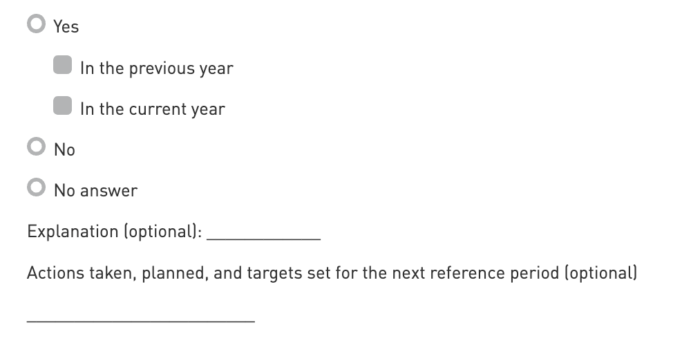 Action taken (optional): Give context to the answer that was provided to explain any action that may have been taken within the last year, as well as any actions planned or targets set for the next reference period.